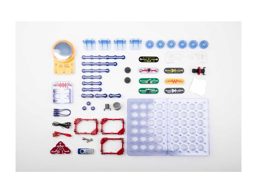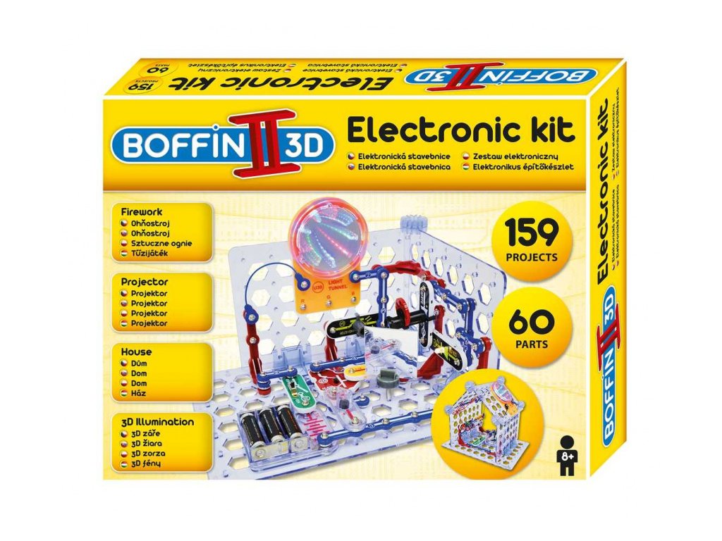 Se stavebnicí Boffin II 3D se dozvíte, jak se vytváří 3D efekty, sestavíte si projektor a maják. Stavebnice obsahuje 60 součástek, z nichž lze postavit projekty: