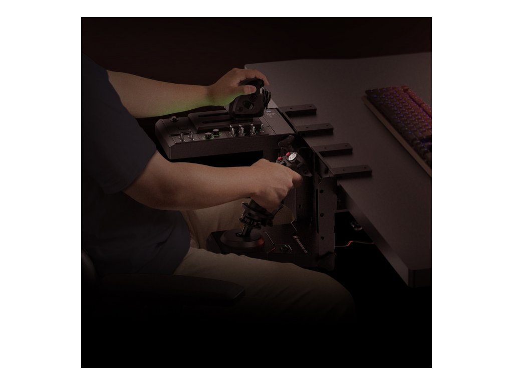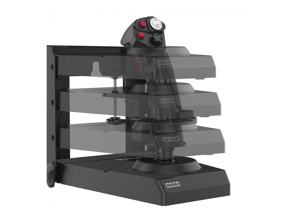 Joystick a plynovou páku lze bezpečně připevnit na stůl pomocí přiložených studijních ocelových držáků. Díky čtyřem nastavitelným výškovým úrovním můžete snadno přizpůsobit rozložení a polohu podle svých preferencí.