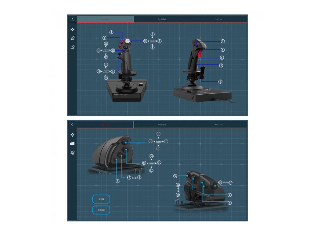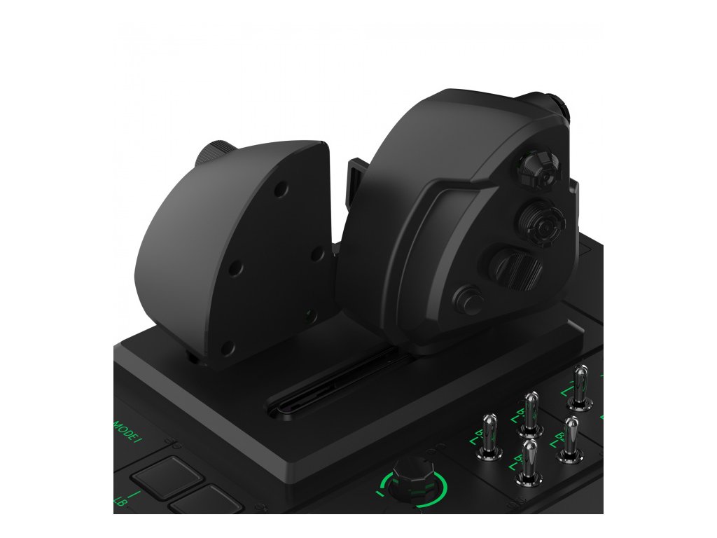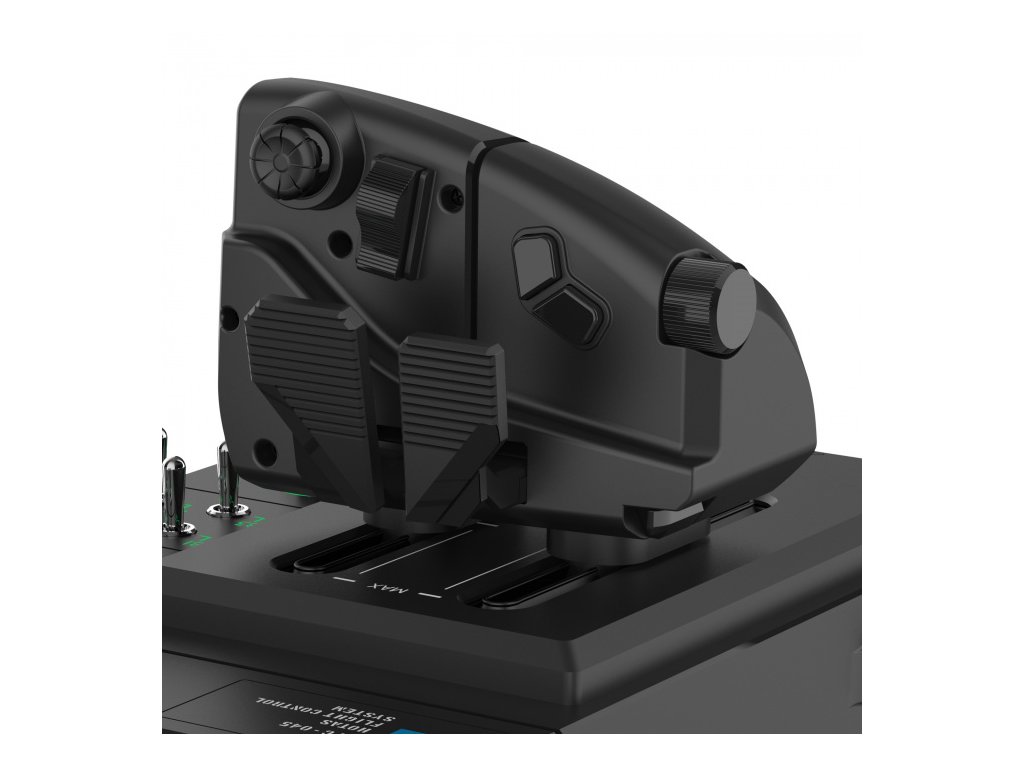 Joystick je vybaven osou otáčení a plynová páka má kormidlo, což umožňuje nezávislé ovládání osy Z. Podle svého herního stylu si můžete vybrat, zda budete ovládat boční osu letadla joystickem, nebo plynovou pákou.