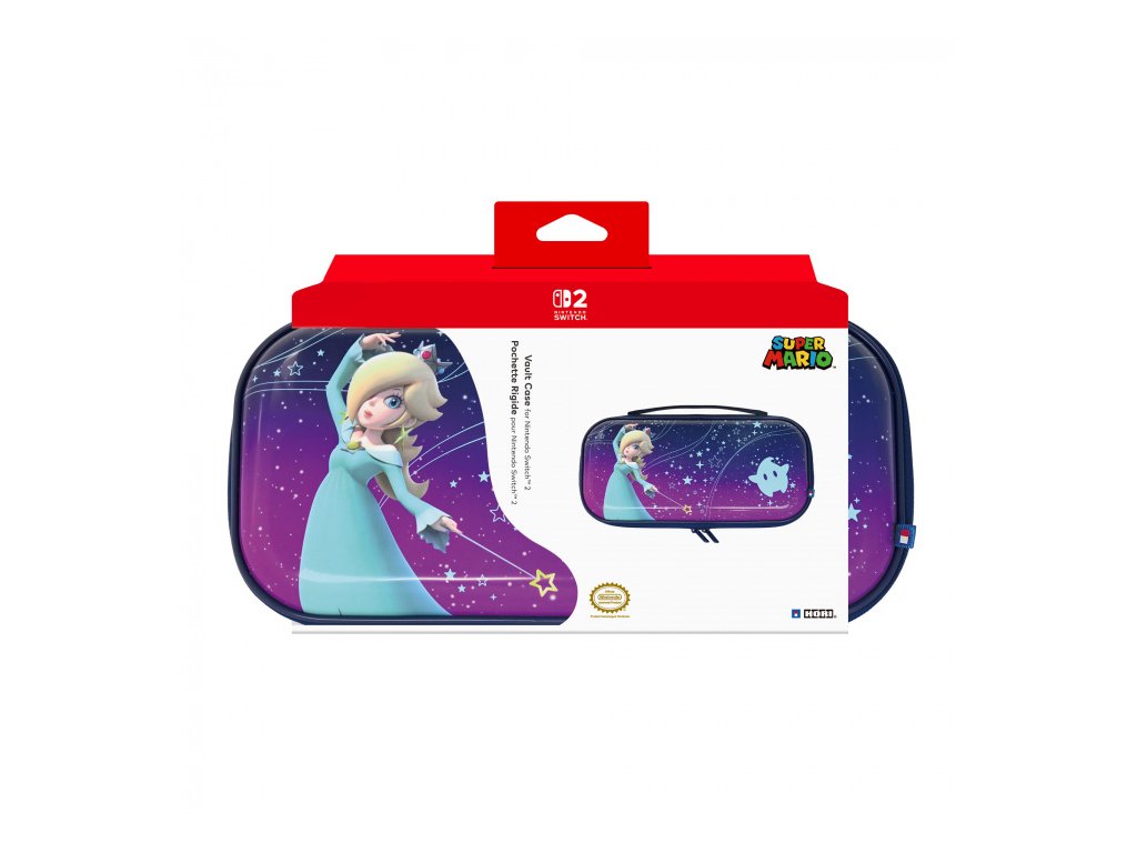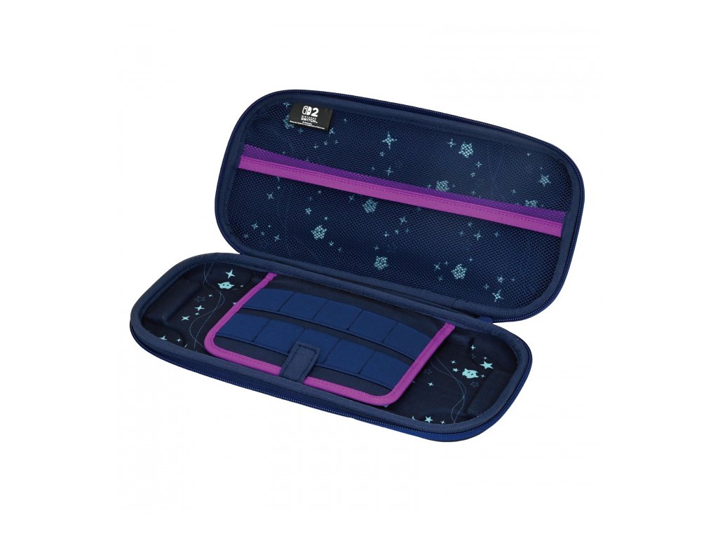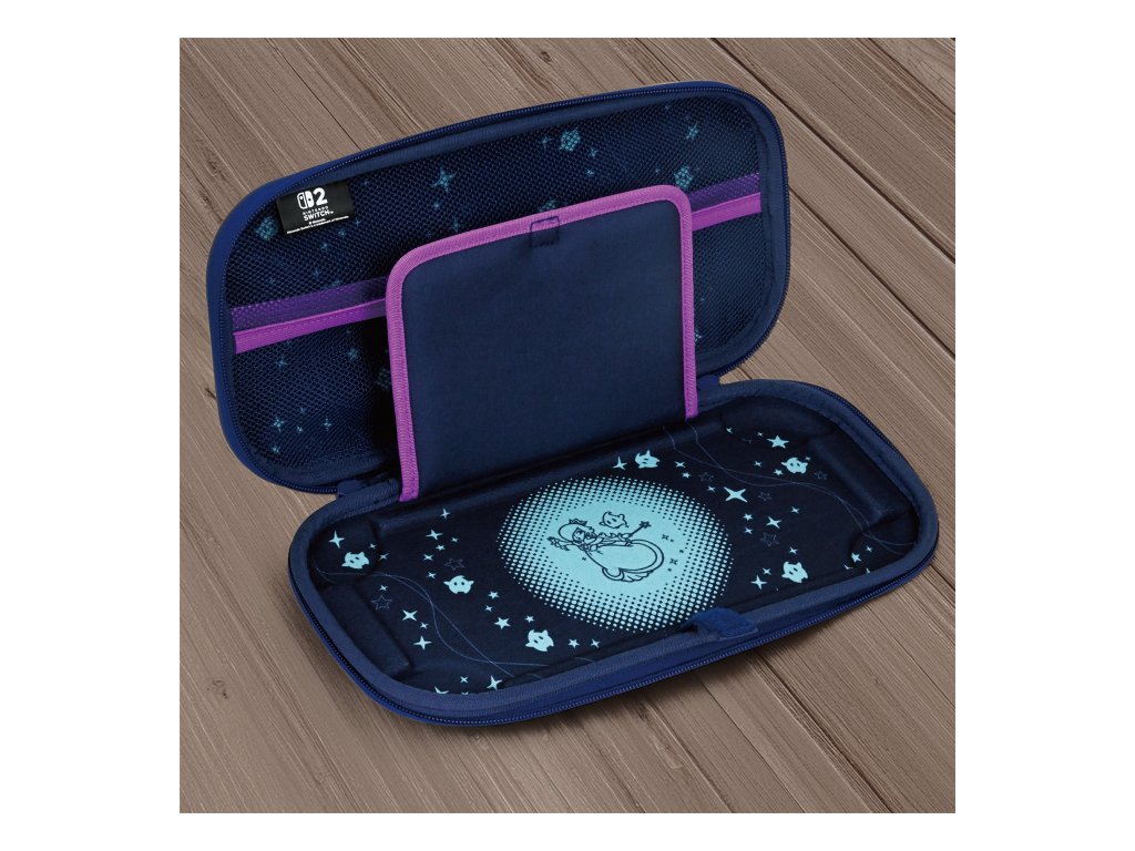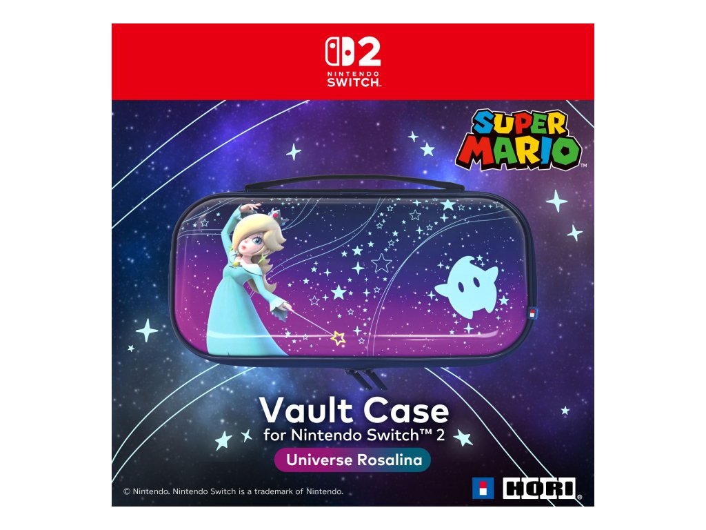 Rosalina a Luma vás doprovodí na každé cestě s pouzdrem HORI Vault Case (Universe Rosalina) pro Nintendo Switch™ 2. Krásná a výrazná plnobarevná grafika Rosaliny zdobí vnější část pouzdra. Měkká vnitřní podšívka s motivem Rosaliny a Lumy chrání konzoli před poškrábáním a opotřebením, takže můžete bez obav hrát i na cestách. Speciální vnitřní konstrukce drží Nintendo Switch 2 bezpečně na místě. Vnitřní přepážka chrání displej a zároveň pojme až 10 herních karet. Síťovaná kapsa poskytuje prostor pro drobné příslušenství.